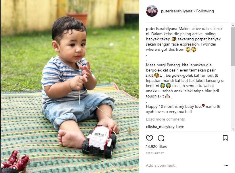 Sarah biasa dedahkan anaknya untuk explore dunia sekelilingnya kerana percaya anak lelaki perlu dibiarkan belajar menjadi berani dan lasak supaya menjadi pemimpin yang baik satu hari nanti.