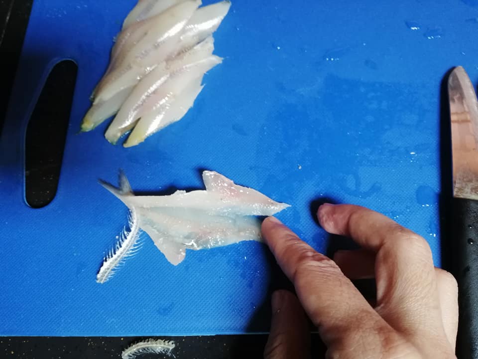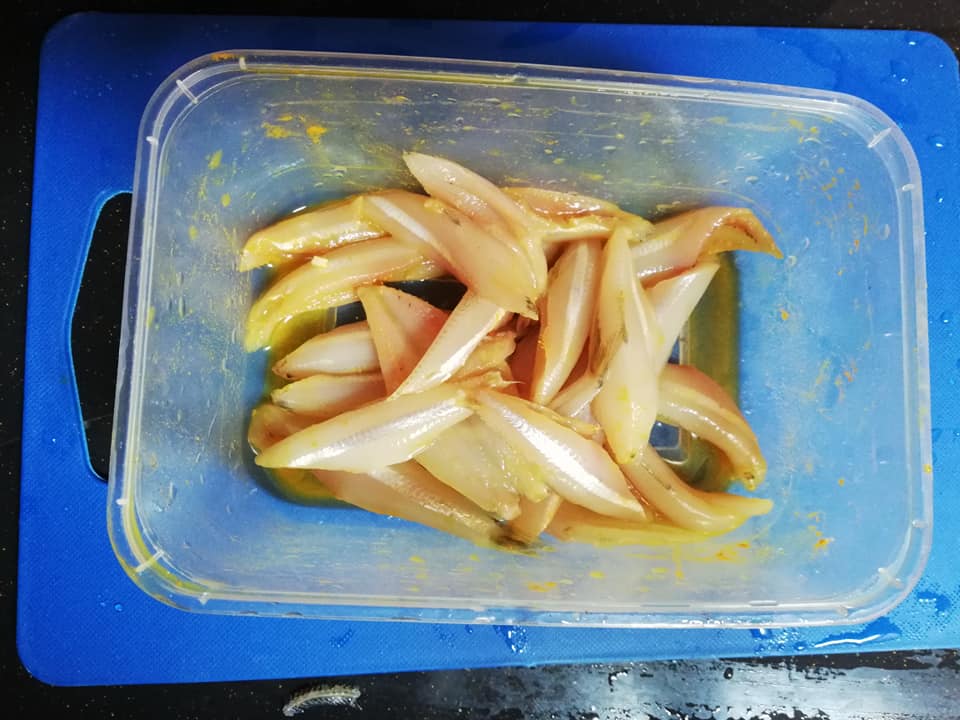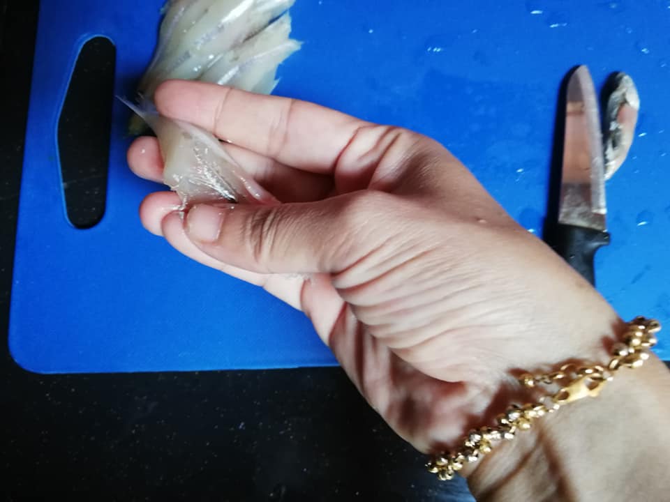 Ikan bilis besar/ikan bulu ayamBuang kepala ikan senget beginiSenget tu sebab nak mudahkan tarik tulang ikan tu. Guna jari je, tak perlu pisauBegini. Tulang tak tajam, anak- anak pun boleh buat.Basuh ikan sampai bersihGaulkan dengan garam dan kunyit1 cawan tepung gandum+ setengah cawan tepung jagung Tambah serbuk kari sikit dan garam. Nak pakai tepung bestari pun boleh.Celup ikan ke dalam tepungGoreng sehingga warna keemasan begini.Sampai terpejam mata makan ikan sedap. Anak ratah jeIsi ikan yang gebu. Yang penting tiada tulang dah. Anak makan begitu saja.