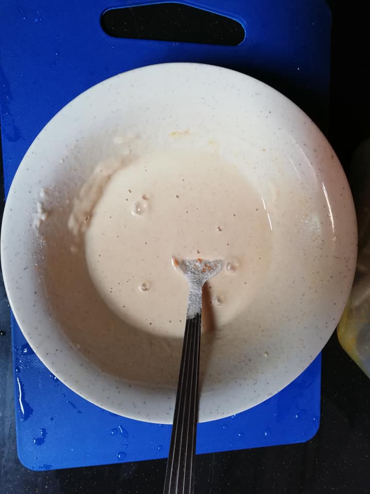 tepung gandum tepung jagung serbuk kari garam minyak masak secukupnya