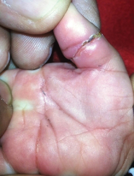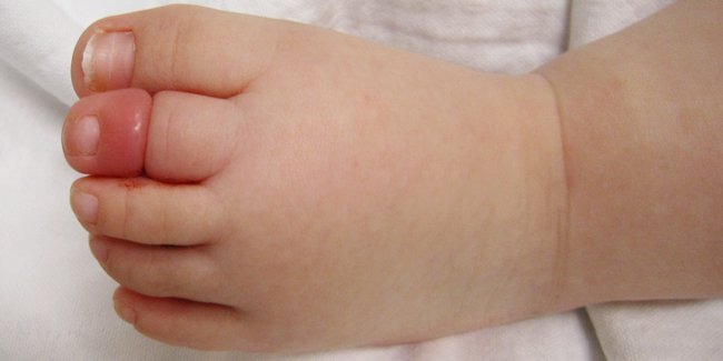 Seorang bayi 5 bulan dibawa ke hospital atas sebab jarinya sudah pun mati (necrosis)