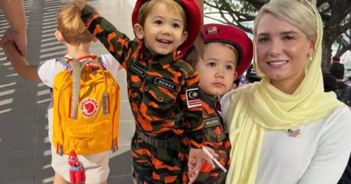 “Hari pertama Johan di prasekolah. Di sana mereka bertutur dalam Bahasa Inggeris dan Melayu. Kami juga bernasib baik kerana terdapat sekolah Sweden di Malaysia,” tulis Che Puan Sofie.
