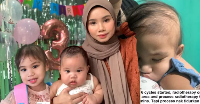 Sejak itu, kehidupan keluarga ini berubah sepenuhnya. Si kecil yang masih belajar mengenal dunia terpaksa menempuh rawatan intensif termasuk 15 kali kemoterapi dan 6 kali radioterapi.