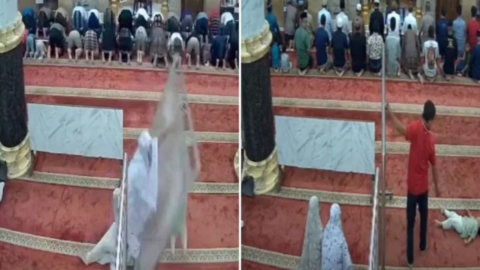 Seorang jemaah lelaki yang menyedari insiden tersebut segera meluru untuk mengangkat tiang pembahagi berkenaan. Ketika itu, tubuh kanak-kanak tersebut kelihatan longlai dan tidak bermaya, menimbulkan kebimbangan yang amat mendalam kepada sesiapa sahaja yang menyaksikan rakaman itu.