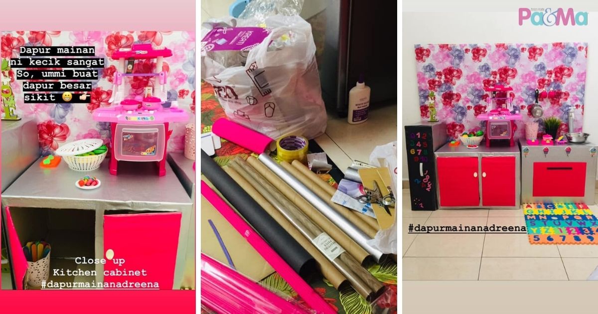 Tak perlu berbelanja besar sebaliknya contohi cara ibu ini, Puan Syaheerah Othman yang menghasilkan sendiri dapur mainan buat anaknya, Ayra Adreena yang kini berusia 2 tahun 1 bulan. Paling jimat kerana modalnya tak sampai RM50. Jom ikut langkah demi langkah yang dikongsikan beliau. Serius cantik!