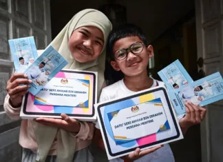 Mak ayah pilih sayur tapi minta mereka pilih nak sayur apa nak dibeli.