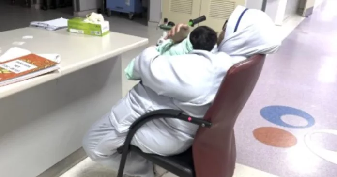 Jururawat tersebut mengambil bayinya, menyapu sedikit minyak di bahagian perut sebelum mendodoikan si kecil itu dengan penuh kasih sayang. Tidak mengambil masa lama, bayi berkenaan akhirnya berhenti menangis dan tertidur lena.
