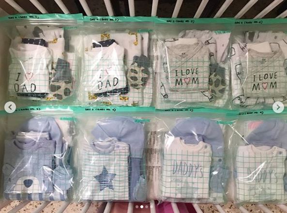 Susun setiap set pakaian pakaian bayi (baju, seluar, sarung tangan, topi & stoking) dalam keadaan teratur dan tersusun supaya mudah digunakan. Ibu ini mencadangkan untuk meletakkan di dalam beg plastik berzip dan sediakan pek tambahan di dalam beg berlainan.