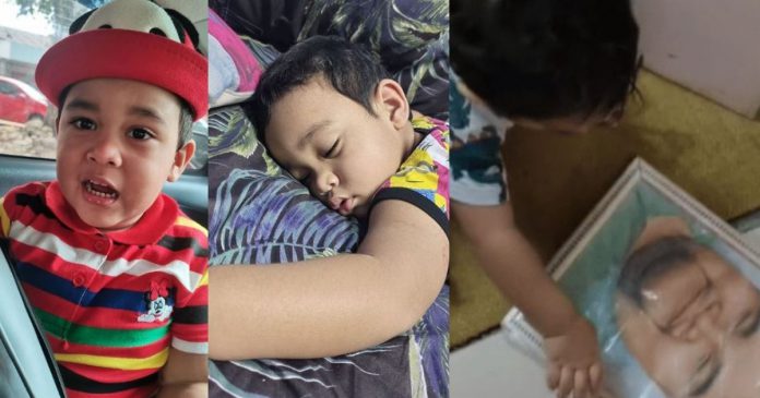 Menerusi video tersebut memaparkan aksi spontan anak arwah yang sedang memegang erat sebuah frame gambar sehingga menyentuh hati dan mengundang sebak orang ramai.