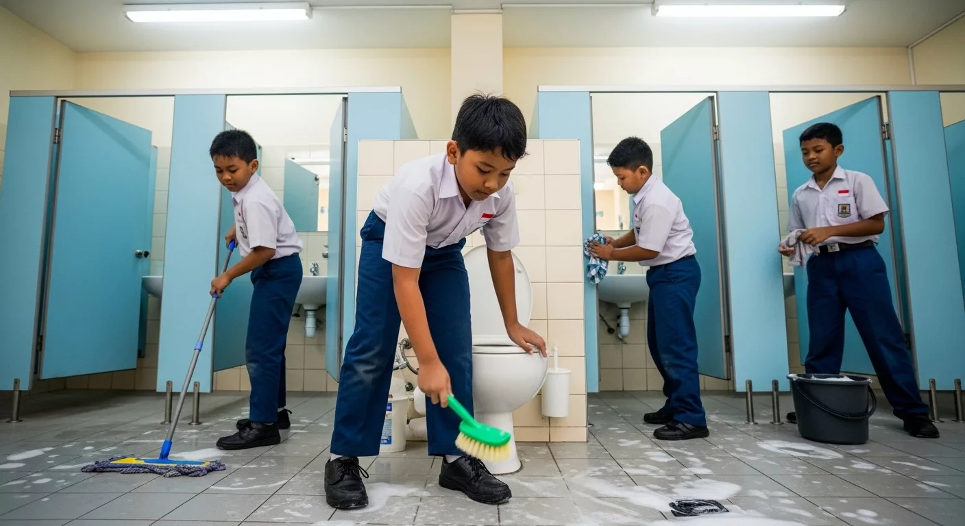 Pelajar Cuci Tandas Sekolah Sebagai Peluang Bentuk Disiplin