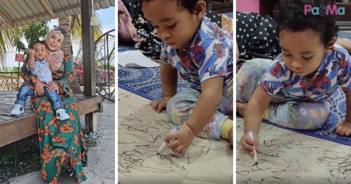 ” Orang bagi papan putih, dia nak main conteng situ jugak, adui budak ni. Ini kerja dia semua ni. Conteng-conteng kat sini,” katanya menerusi video yang dikongsikannya.
