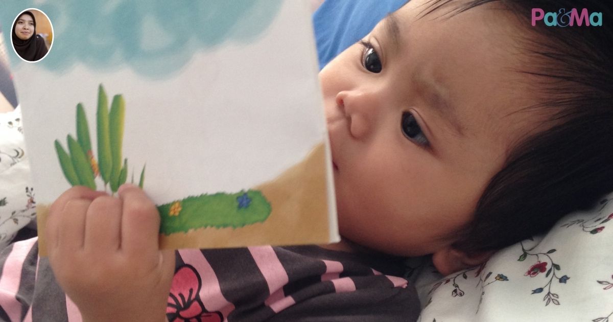 Kami mula membacakan buku kepada anak seawal usia 2 minggu. Usia 3 bulan ke bawah, disarankan gunakan buku atau flash card high contrast ,hanya warna hitam dan putih.