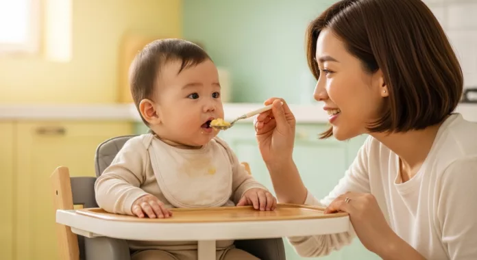 Bila dah yakin bayi bersedia, ibu boleh mula perlahan-lahan. Tak perlu tergesa atau risau tentang jumlah yang bayi makan. Pada fasa awal (6–8 bulan), tujuan utama bukan untuk kenyang, tapi untuk pengenalan rasa, latihan mengunyah dan menelan.