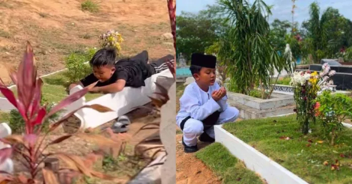 Video di media social yang tular menyentuh hati ramai apabila anak kecil itu dilihat berbaring di atas kubur ibunya seolah-olah memeluk ibunya kerana terlalu rindu.