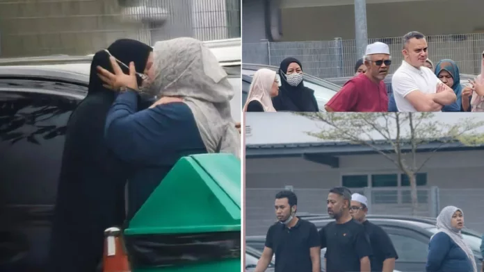 Ahli keluarga serta kenalan terdekat dilihat saling berpelukan sambil memberikan kata-kata semangat bagi menenangkan pasangan tersebut, sekali gus menambahkan suasana hiba di lokasi kejadian yang sunyi dan penuh emosi.